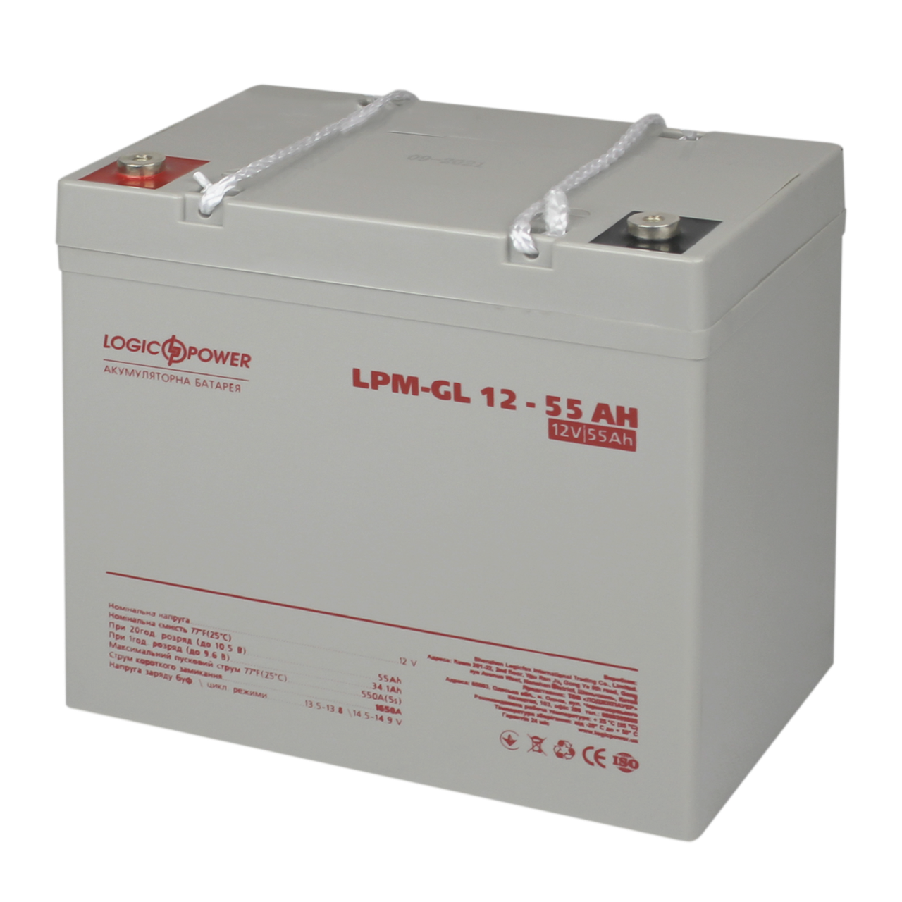 Батареї торгової марки Logicpower LPM-GL 12 V 55 AH мають технологію GEL, яка дає змогу акумуляторам берегти чудову живучість за твердої експлуатації. У тих місцях, де авто батарея вбиває за 2 місяці — гелева батарея береже ємність і продовжує діяти.